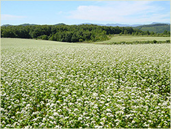そばの生産日本一を誇る北海道は、夏季でも冷涼で雨が少なく、寒暖差の大きい気候条件ということもあり美味しいそばを栽培するのに非常に適しているのです。その品質の高い玄そばの鮮度を保つため15℃~18℃の低温でねむらせ保存しています。
