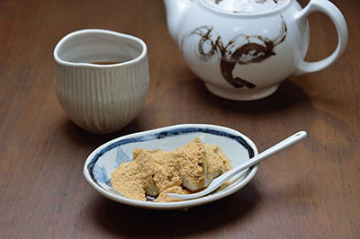 トロトロそばがき団子の黒蜜ときな粉掛け